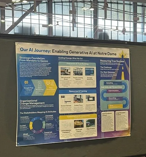 Transparency was key: The University of Notre Dame openly communicated how AI would be used, what data it would access, and how it would support – not replace – human judgment. Training sessions and feedback loops helped faculty feel confident that AI would enhance learning outcomes. This collaborative approach positioned AI as a tool for improving operations and the student experience, rather than as a shortcut for students to cheat.