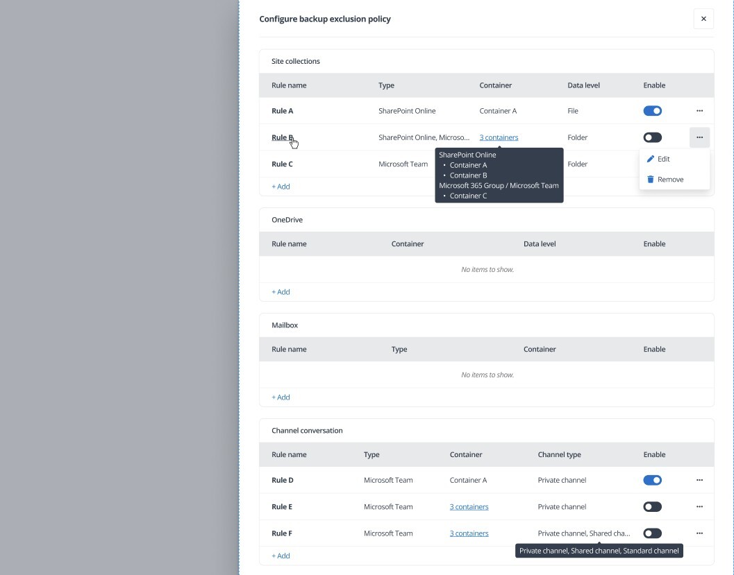 Granular file and folder-level exclusion filters are now available for OneDrive, SharePoint, Groups, and Teams.