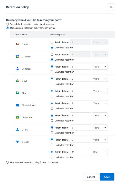 Cloud Backup for Google Workspace now supports day-based retention policies, giving organizations more flexibility to align protection with internal and regulatory requirements. Retention can be configured for as little as 30 days or extended to match specific data policies, helping teams balance compliance, efficiency, and storage management with greater precision.
