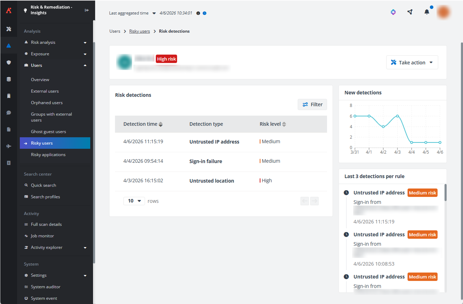 Risky User insights are also enhanced. User detail views now surface clearer activity trends and enable key remediation actions directly within Insights, making it easier to understand behavior over time and respond quickly to potential risks.