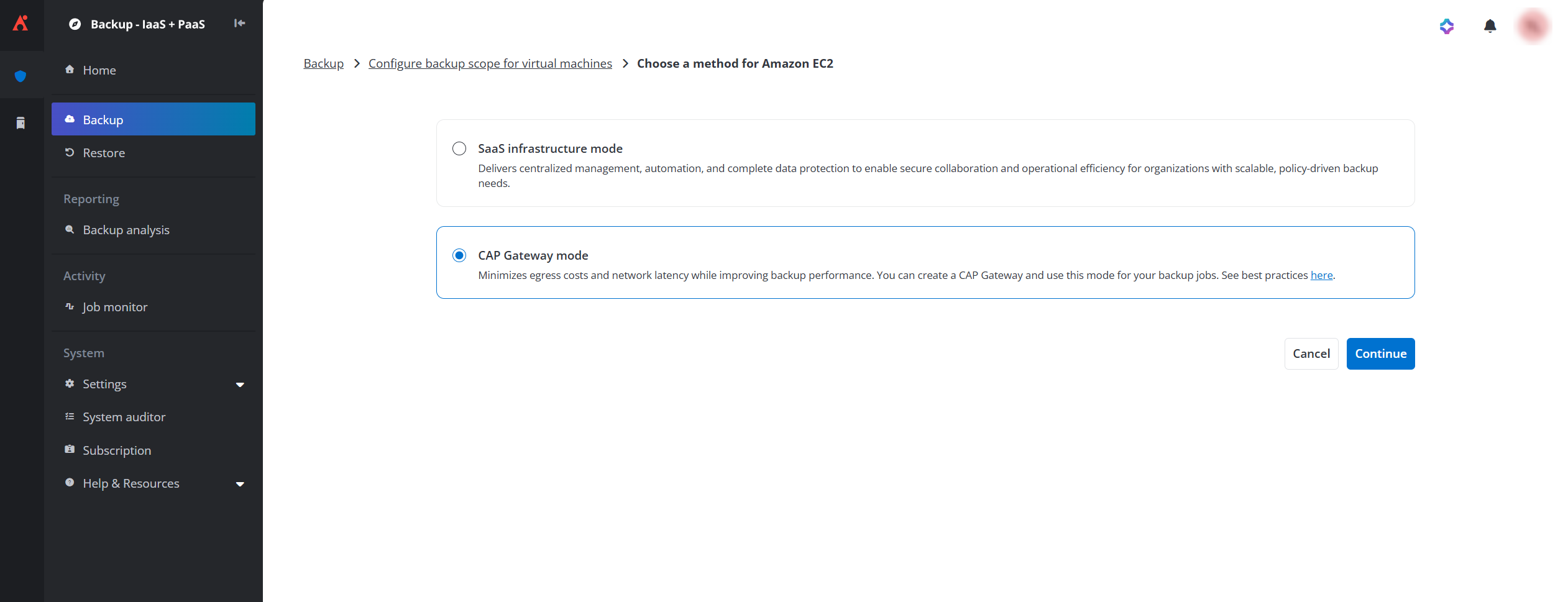 To streamline operations, the CAP Gateway now supports automatic installation and updates, helping teams stay current and avoid backup failures. Clearer status indicators and new configuration options, such as log upload preferences, improve usability and transparency. Plus, CAP Gateway mode now supports Amazon EC2 backups and restores, further extending multi-cloud protection.