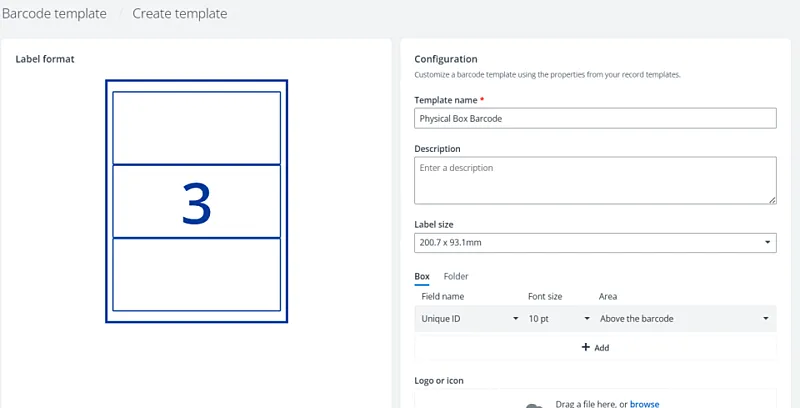 For physical records, Opus introduces custom barcode templates, allowing users to design labels with tailored fields and dimensions for easier tracking. This upgrade streamlines inventory management and strengthens audit readiness by ensuring essential metadata is always visible.