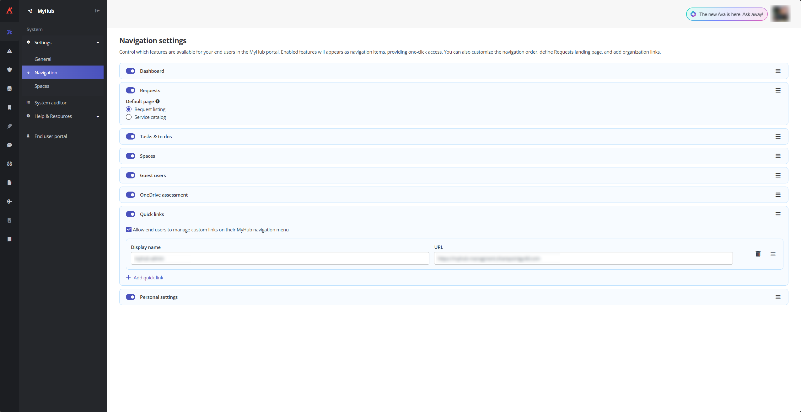 Customize navigation settings to focus on services, tasks, reports, and requests that matter most.