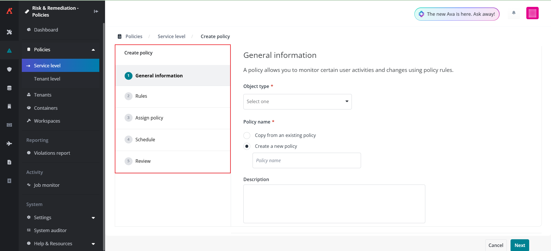Create policies using the new policy builder wizard