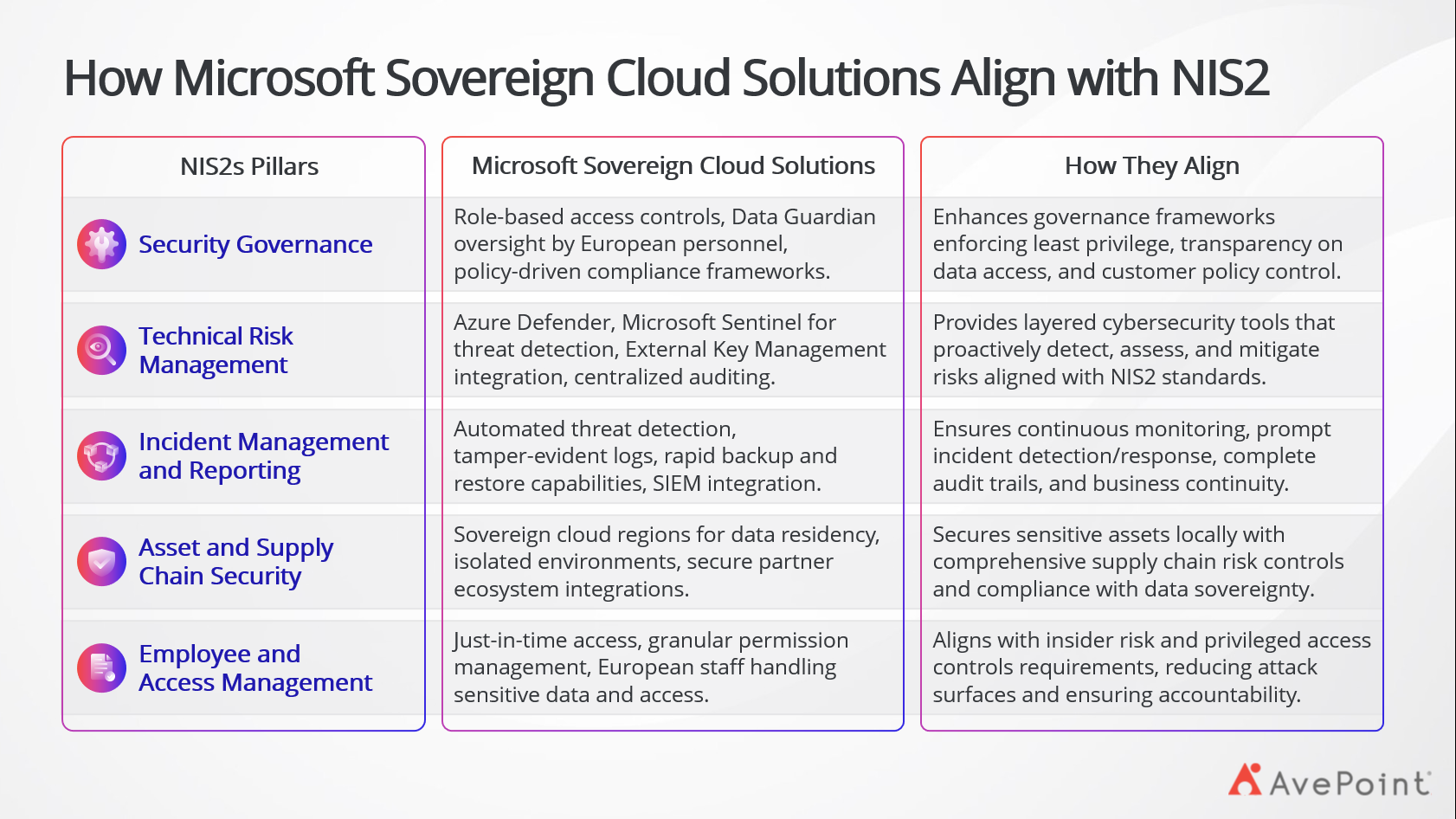 We’ll also demonstrate how partnering with AvePoint empowers your organization to achieve seamless sovereign integrations, automated and resilient data protection, and full advantage of Microsoft’s Sovereign Cloud innovations.