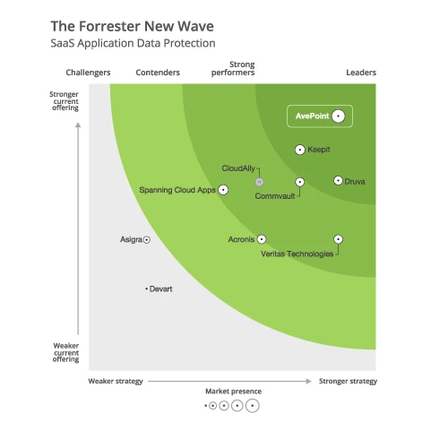 在Forrester New Wave™ 報告中,AvePoint 被評為 SaaS 應用程式資料保護領域的領導者